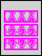 Abbreviated rules: The object of the game is to locate three tiles that match, and remove them from the board (by selecting them with the mouse). The matching tiles will be replaced by three new tiles. If there are no matches showing, then the extra tiles button should be used to deal three additional tiles. What is a match Each tile represents four properties: color, shape, pattern, and number of objects. For each property, there are three possible values, as summarized in the following table. Tile Property Matrix colorblueredmagenta shaperectanglediamondoval patternclearpatternedfilled number123 Three tiles match if for each of the four properties, the value of each tile is either the same or different for that property. For example, the three cards: match because the color is the same (magenta), the shapes, patterns, and number are all different. Acknowlegments This game was inspired by a card game called Set, whose concept (and rules) were described to me by J Uhler. Stephen Uhler
